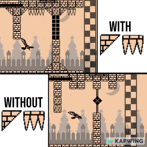 Wall corners and spikes make level less blocky and add character to it.